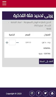 ينقلك الموقع إلى صفحة جديدة بها قيمة التذاكر التي قمت بحجزها لمباراة الدحيل والهلال.